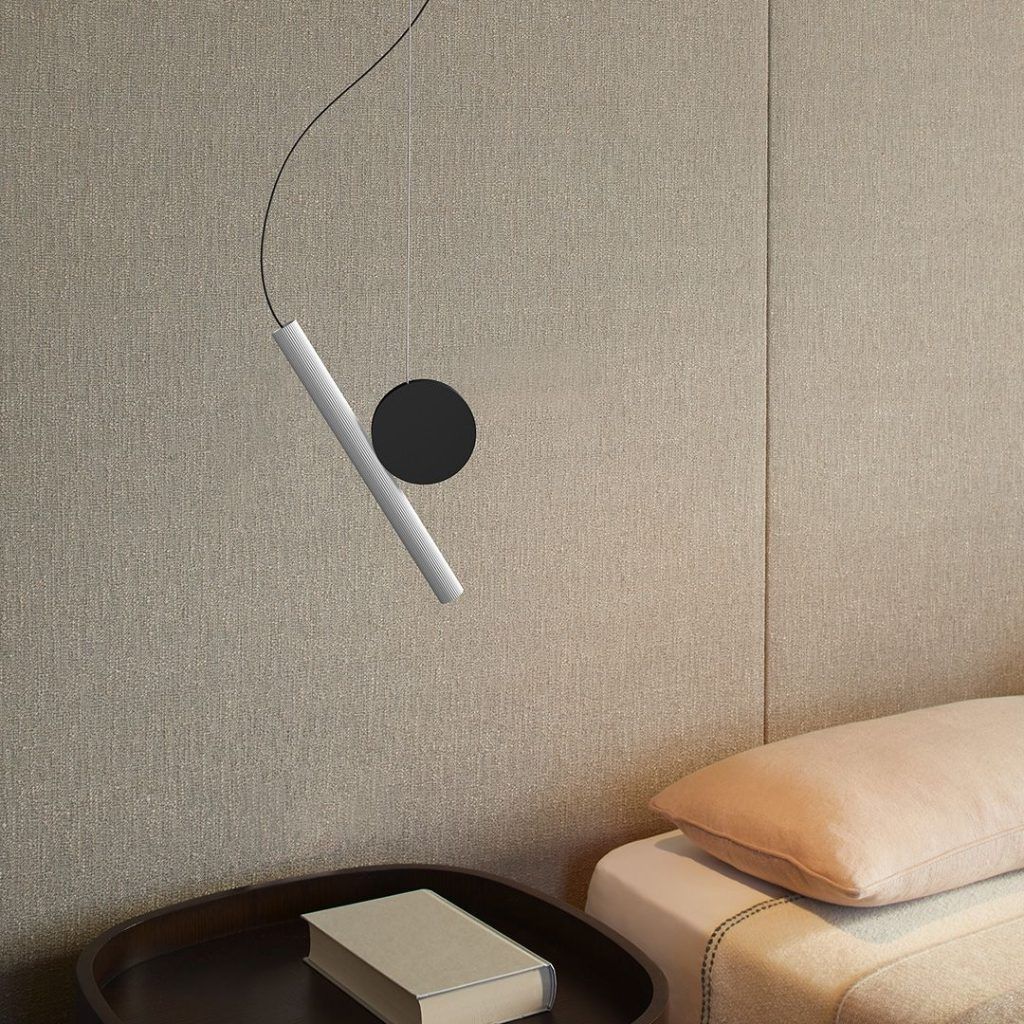 The Luceplan Doi has been created as a suspension lamp system. The typology calls for one or more parts to be suspended from the ceiling by means of a cable, free to move and float in space, until their weight achieves stability to determine their position. The lamp appears to be stable, but is always in a state of tension.